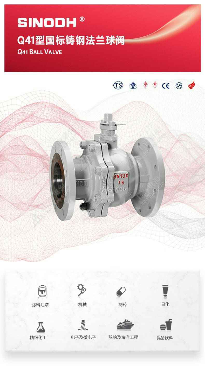 Q41型国标铸钢法兰球阀,为乐鱼官方站页面登录入口-乐鱼(中国)自主研发生产。本产品设计制造标准符合GB/T12237、GB/T12224标准。该产品的球体在介质压力作用下球体能产生一定的位移并紧压在出口端的密封面上,保证出口端密封。适用于水、溶剂、酸和天然气等一般工业介质也适用于工况恶劣的介质,如氧气、过氧化氢、甲烷和乙烯等介质。